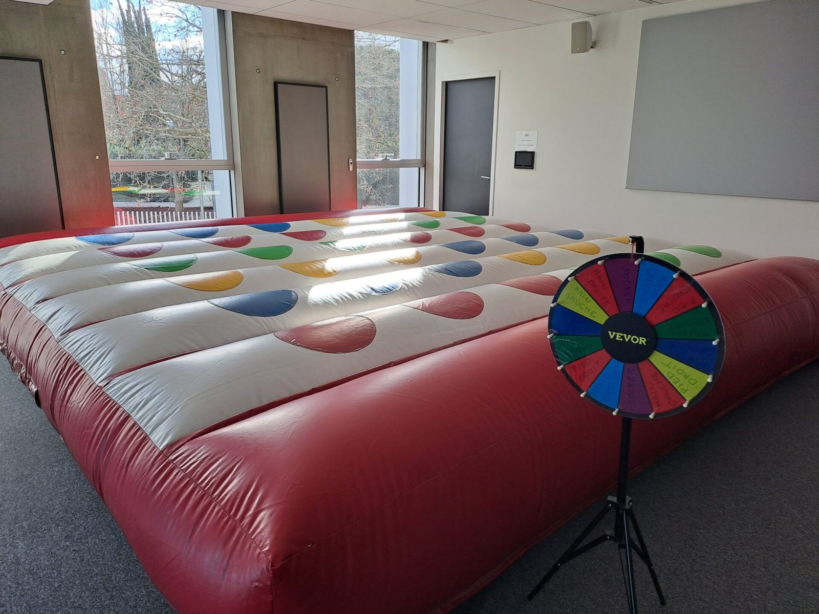 Ce jeu gonflable s’inspire du jeu de société du même nom. Avec ce twister géant, il faudra donc poser votre main ou pied sur la couleur demandée.